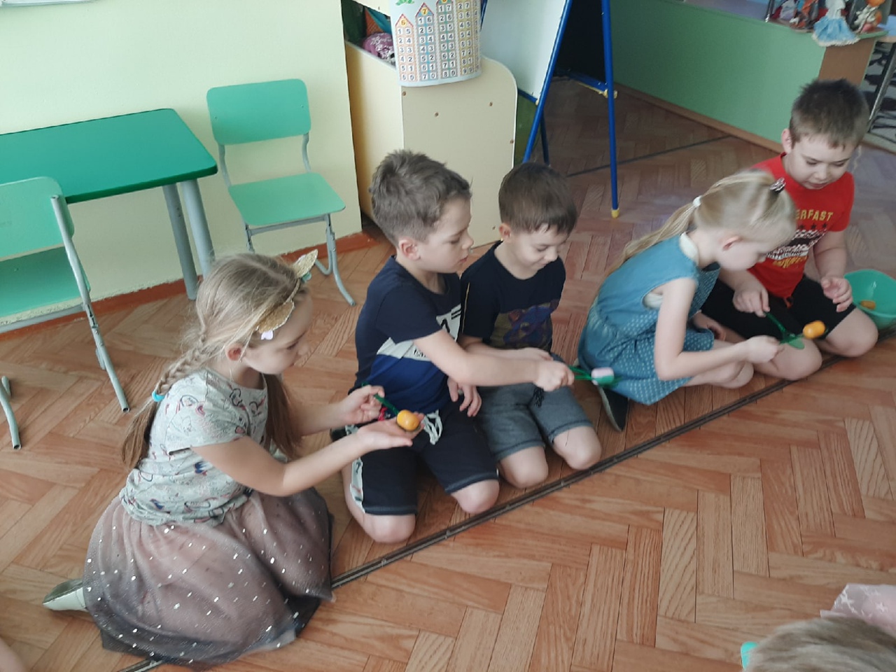 Дошколята разбились на две команды и выбрали капитанов.